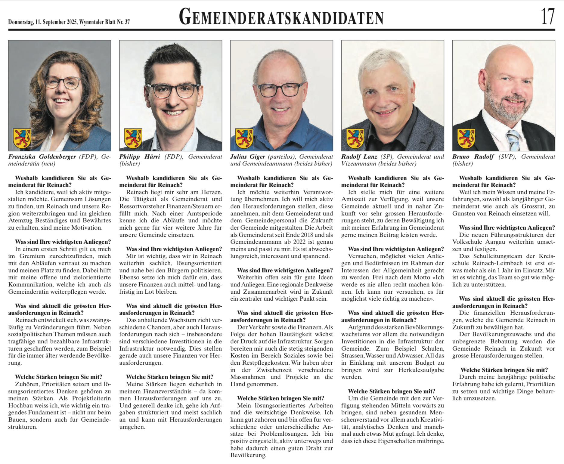 Fragen zu Gemeinderatswahlen Reinach 2025